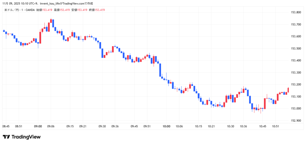 - 週後半(6日〜7日): 木曜日あたりから雇用統計への期待感でドルが買われ、上昇トレンドが発生。そして金曜日の雇用統計本番。結果は市場予想とほぼ同じだったため、発表直後は乱高下しましたが、すぐに落ち着きを取り戻しました。